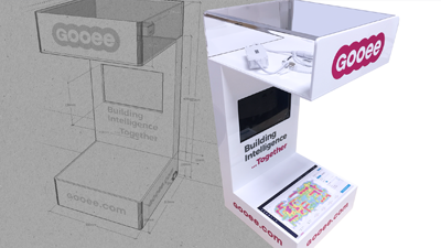 Designed a live smart sensor demo unit for use at HK International Light Fair. The downwards-facing sensor feeds data to the integrated screen beneath, showing heat mapping etc. The display showcases feature products under a clear PETG enclosure, with all other wiring and components hidden from view.