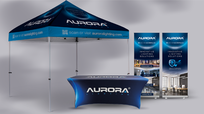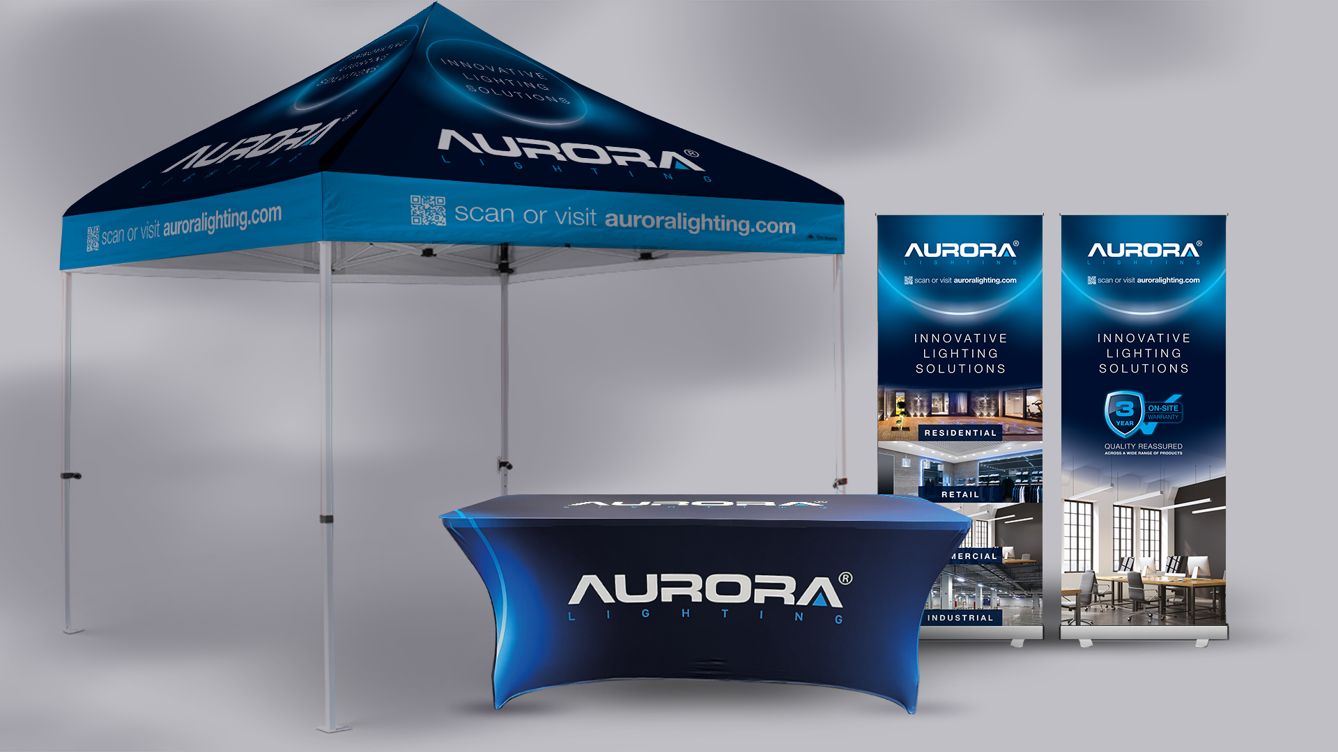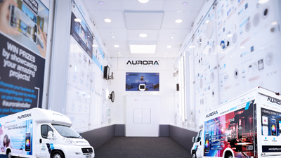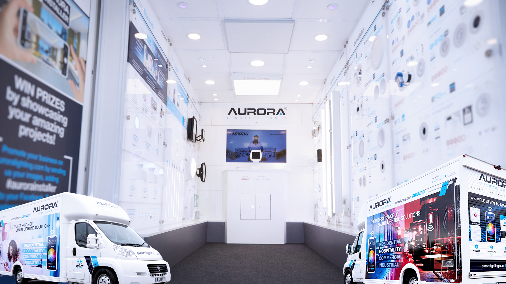 One of many iterations of Aurora's mobile lighting showrooms; designed exterior livery, internal product displays, on-screen assets, printed foamex panels, vinyl graphics, arranging remedial paintworks as necessary. Email and social media promotions for attendance at regional shows and trade events.